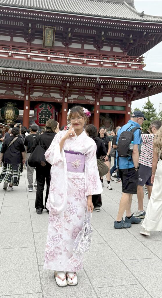 ダレタメで働いて、1年以上になりました。仕事も楽しいし、休みの日に遊ぶに行くこともあります 。 私は写真 を撮るのが大好きです。 休みの日に色々な所へ行って写真を 撮ります 。 一番 思い出に残っているのは、 着物 を 着たことです。