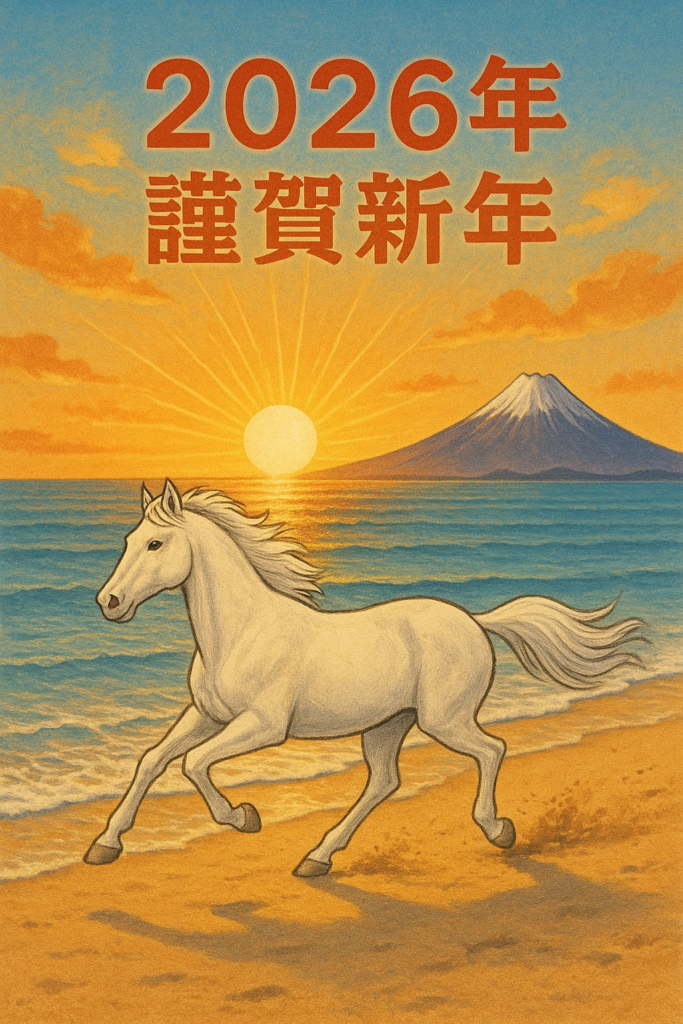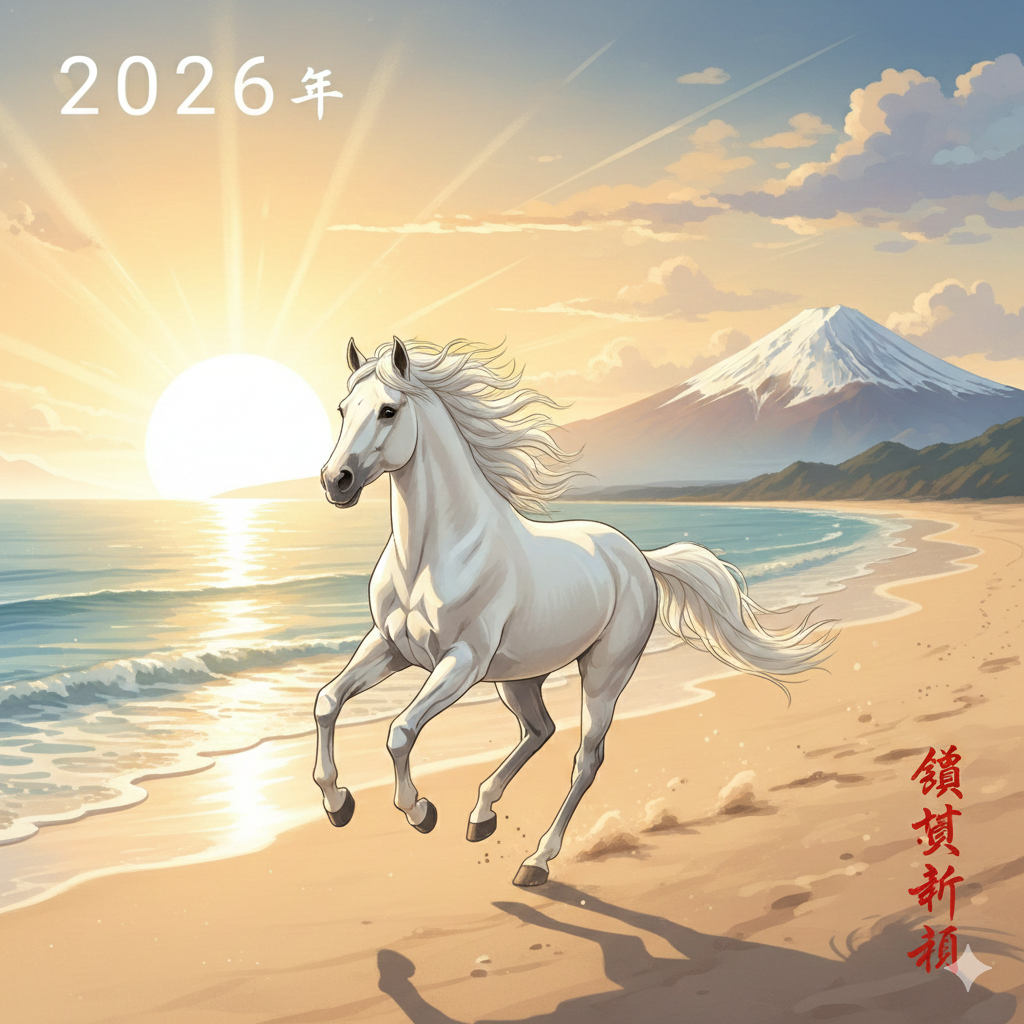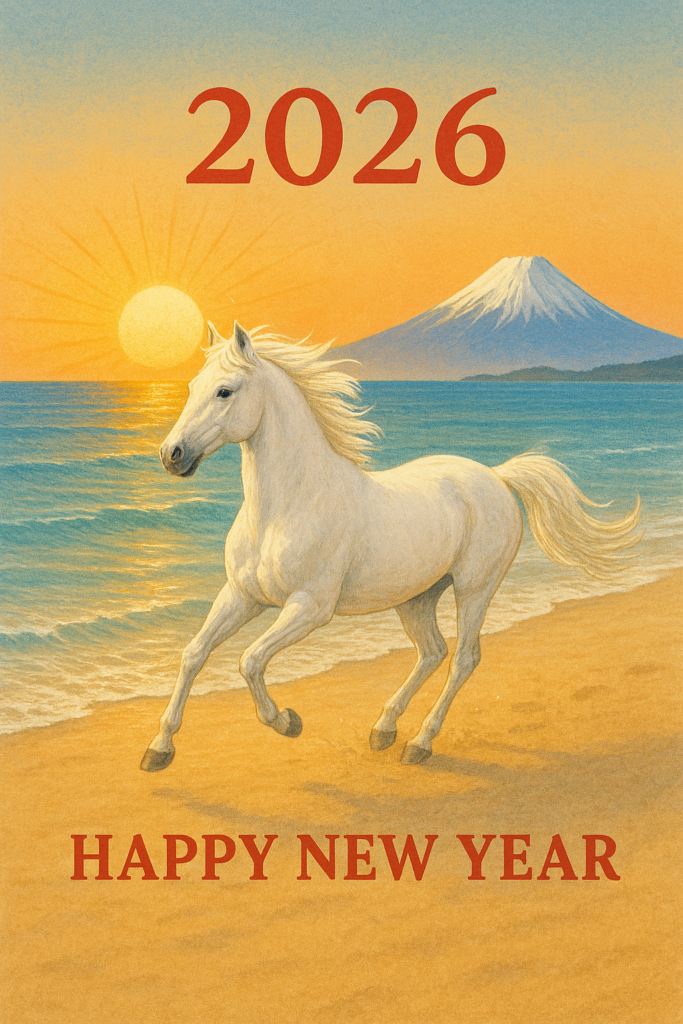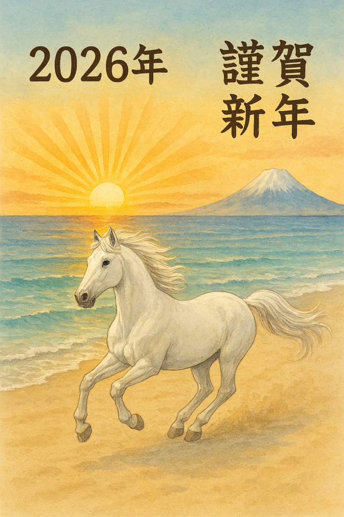 イラストは指示通りにできてます。「2026年」「謹賀新年」も細かい部分は抜きとして、まあまあ🤔