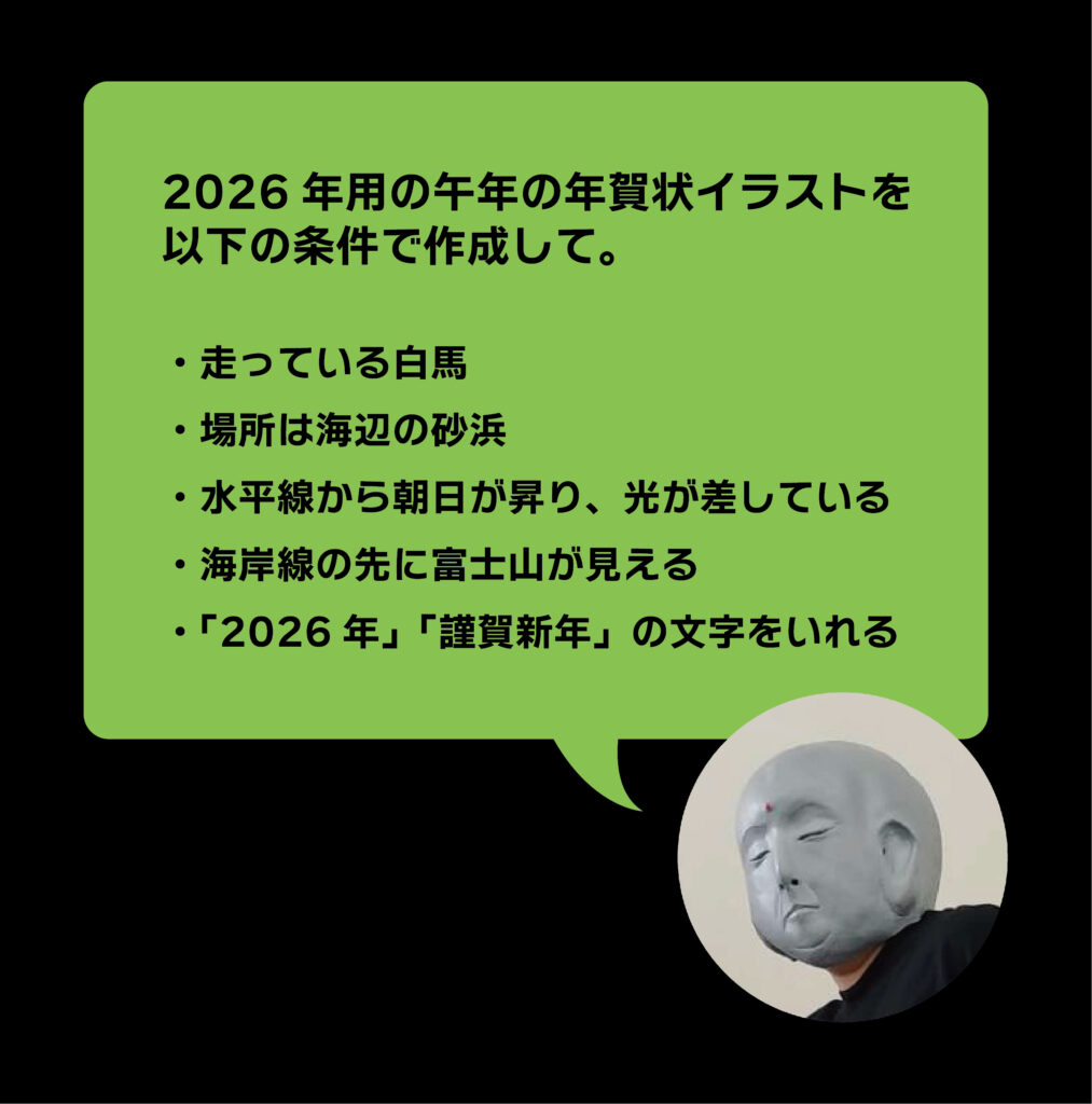 でも「2026年」「謹賀新年」の文字入れに対する指示に関してはなぜかスルー。おしい!