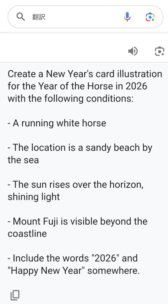 まずは、グーグルの翻訳機能で先ほどの日本語のプロンプトを英文に。
