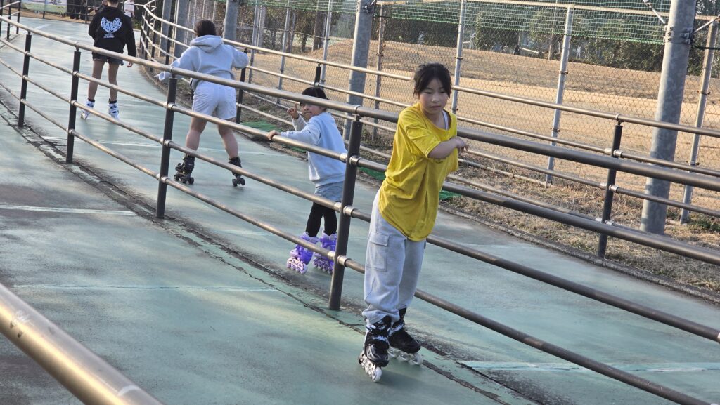 クリスマスにサンタさんからもらったローラースケートに最近ハマっている3人。