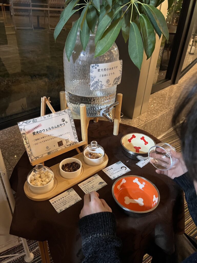 お犬様様で、夕飯の時はまず先に飼い主より先にお犬様のお水が出てきたり、ご飯は贅沢にジビエ料理が出てきたりと笑笑笑